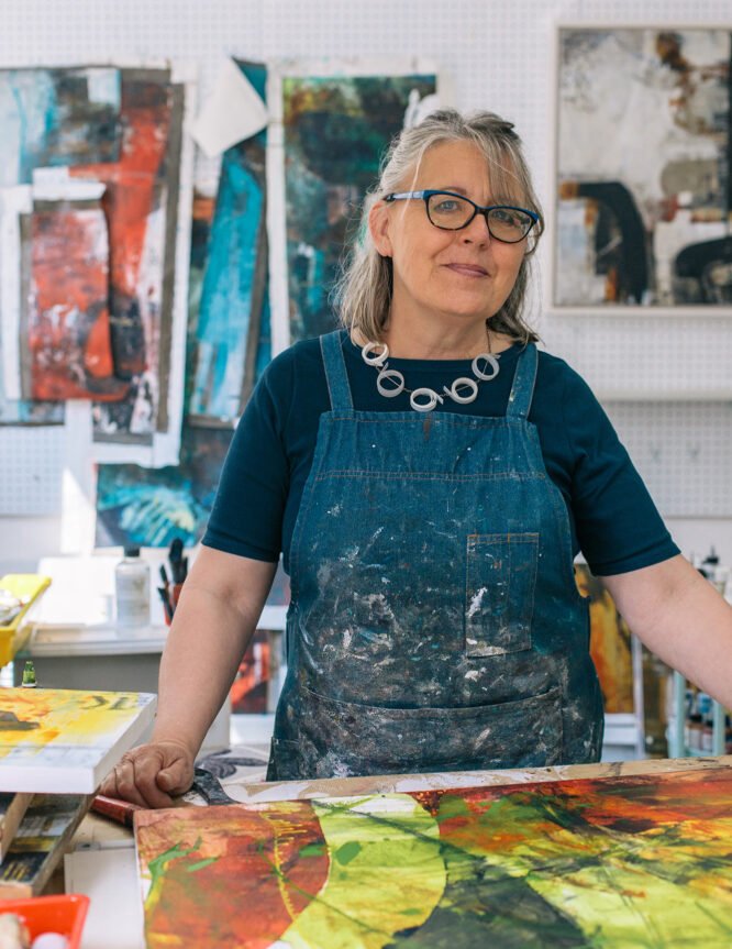 Sally is an artist based in Norwich, UK. She creates works on paper and mixed-media paintings informed by the textures, colours and structures of the urban environment. Her current practice reflects the decades she has been creating, using papers and collagraph plates created over decades. By placing new against old she is revisiting her history; ‘when I stand back I feel I am not looking at a piece I have made this month, this year or even this decade. At this point in my life that is where the meaning lies.’