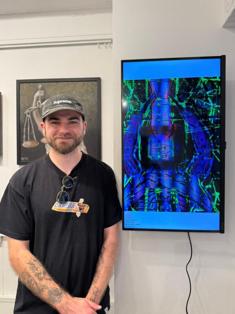 Pugilist, Architect and DJ, Renouf’s artwork stems from several inspirations: Mayan culture, hallucinogenics, and the internal struggle of the self.